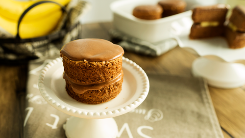 取一个小圆片抹上甘纳许夹馅,再放一片香蕉,盖上另一个小圆片,再抹一层甘纳许,冷藏几分钟后即可食用!