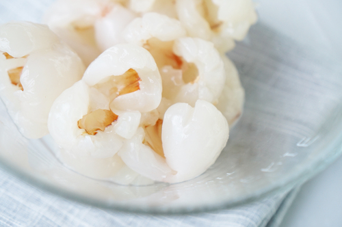 鲜荔枝剥皮去核(最好是当日新鲜采购),注意把果核边缘的白色果肉去掉,以免发苦发涩;