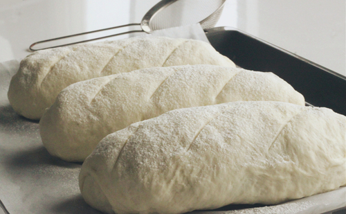 温度38℃二次发酵至两倍大(如没有发酵箱,可放在湿度较大的地方,加盖保鲜膜。因为常温发酵比温控不准的烤箱发酵效果稳定);烤箱预热200℃;在发酵好的面团表面筛一些面粉,用割刀划出喜欢的刀口。