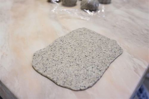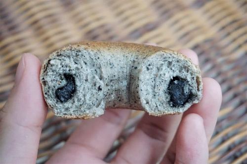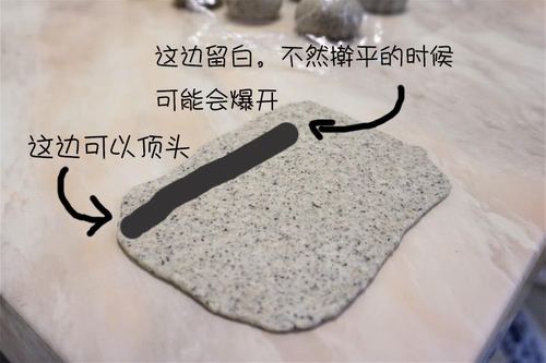 松弛好的面团用擀面杖擀成长方形,黑芝麻馅搓成长条放在上部,包着卷下来。我照片里做的是没馅的版本,p了个馅上去,大家自己意会一下