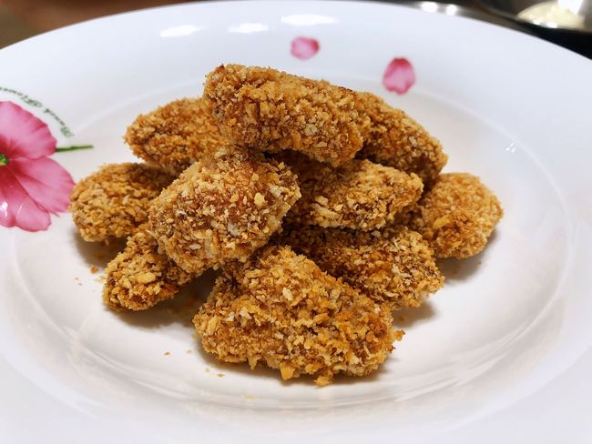 配方:鸡胸肉,鸡蛋,淀粉,胡椒粉