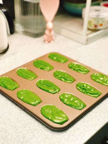 将面糊倒入裱花袋,挤入玛德琳专用模具,烤箱预热170~180度,烘烤15~15分钟