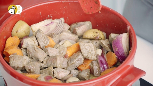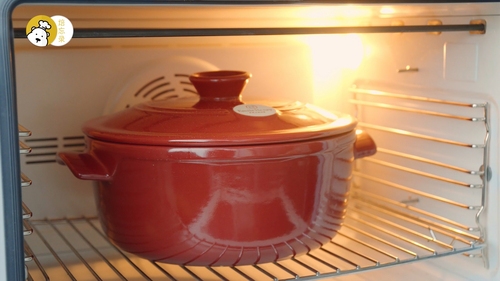 炖好后取出,开盖并用铲子翻动食材,再放回烤箱不加盖炖30分钟,同时烤箱门也要留缝帮助散发水蒸汽;