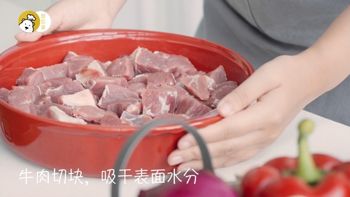 牛肉提前准备:切成4-5cm的方块,泡出血水后用厨房纸吸干;