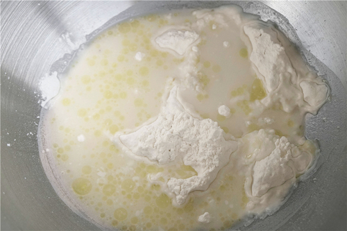 把面粉、酵母和盐在碗中先混合,逐渐加入水和橄榄油,把所有材料揉成光滑的面团后,静置10分钟;