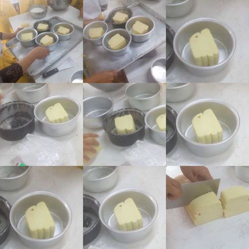 切成250g一个,放入刷了黄油的模具中,发酵两个小时