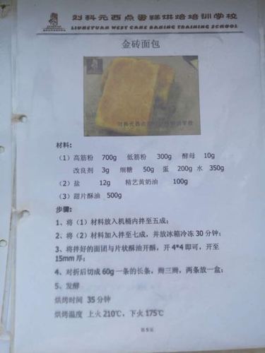 10克、蛋 200克、片状甜酥油 500克、低粉 300克、改良剂 3克、水 350克