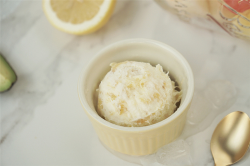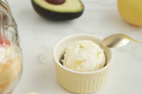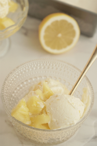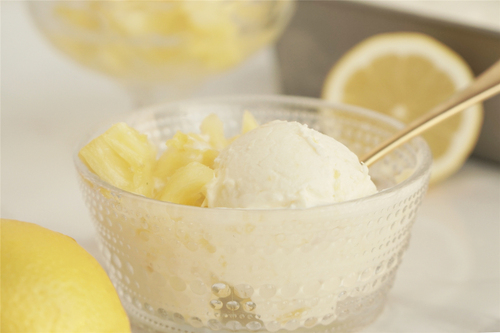 搅拌完成后,冷冻至少3小时,就可以拿出来吃啦!如果没有冰淇淋机,可以把细砂糖与淡奶油混合,打至十分发,与菠萝果肉混合,搅拌均匀拿去冷冻就行!