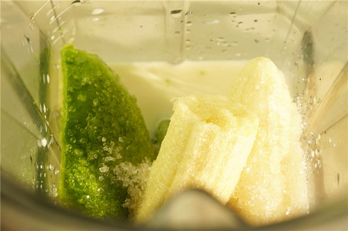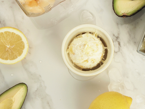 牛油果香蕉去皮切块,加入所有材料,用料理机打成果泥;
