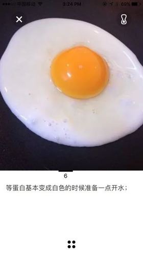 等蛋白基本变成白色的时候,准备一点清水。(降温,类似生煎的作用)