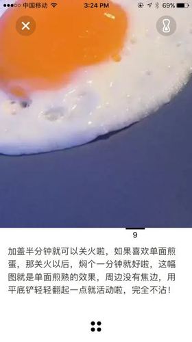 加盖半分钟就可以关火啦,如果喜欢单面煎蛋,那关火以后。焖个一分钟就好啦,这幅就是单面煎熟的效果,周边没有焦边。
