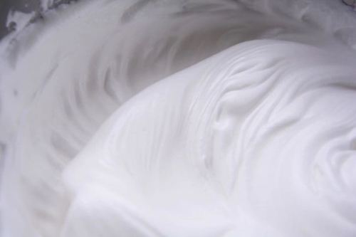 细砂糖分3次加入蛋清中打发程度:湿性偏硬,也就是中性发泡,有鸟嘴状的尖勾(图上是之前晩上拍的,画质偏模糊)