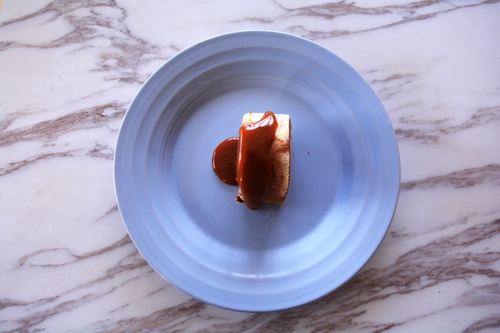 我没有加奶油,直接佐以海盐焦糖酱吃的,味道超级好哎如果加奶油的话,将奶油均匀涂抹在蛋糕上,然后离自己近的一端,均匀集中些奶油,尾端斜切部分的奶油要薄,依旧两端油纸扎紧,放冷藏一个小时定型
