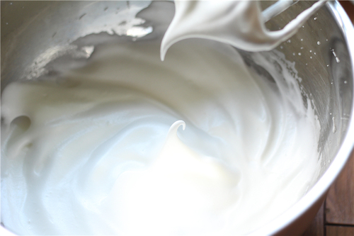 蛋清加砂糖打发到湿性发泡,即提起打蛋头出现小弯钩的状态;