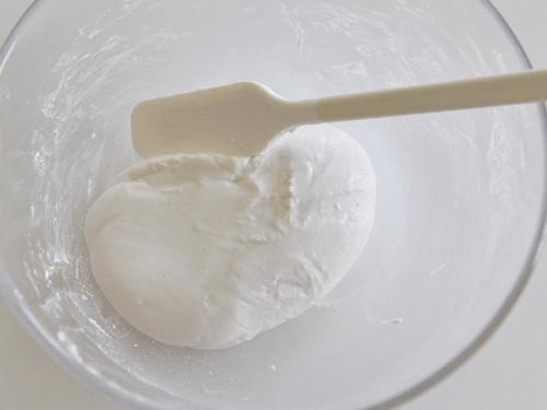 白玉粉或糯米粉加水混合成团。每包粉的吸水量都有一点偏差,所以配方里给出的水量有几克偏差范围。加入大半的水,留一小勺看看软硬质地,粉团大致和平常做汤圆的软硬程度差不多就行。要注意的是,在调整软硬的最后阶段,面团从软软的、会趴下变扁的程度,到合适的硬度,可能只差半克一克的水,不要一下加多;