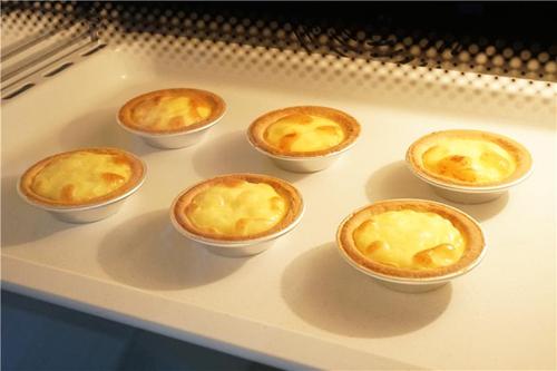 放入预热好的烤箱中层,烘烤16分钟,烤至蛋挞表面出现焦糖色即可出炉;
