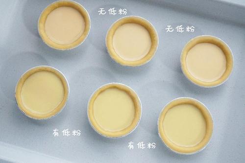 该方子奶香味比较浓郁,加入低筋面粉,口感就不会那么甜腻,成品颜色稍稍偏黄(图中可见对比),喜欢浓郁口感的胖友们可以选择不加。