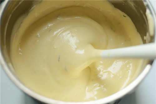 将1/3蛋白糊放入蛋黄糊中,用蛋抽搅拌均匀,新手请用刮刀操作。