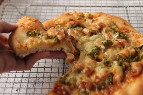 配方:玉米,青椒丝,去骨鸡腿,披萨皮