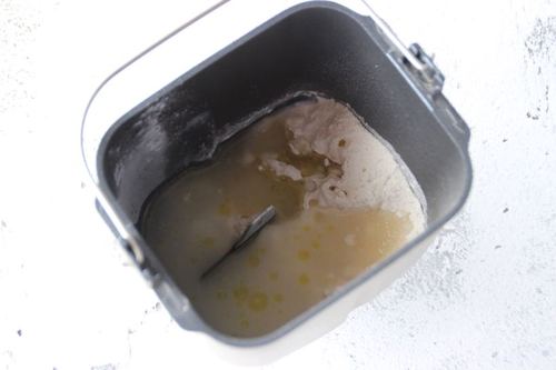 所有披萨底材料放入面包机,选择披萨皮程序。 * 厨师机就直接揉到扩张阶段。