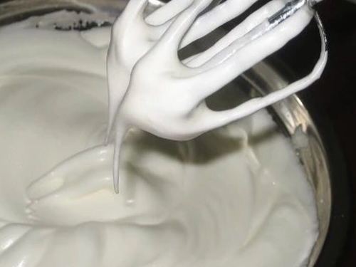 蛋清5个+白砂糖70克+柠檬汁2-3滴,打至湿性发泡