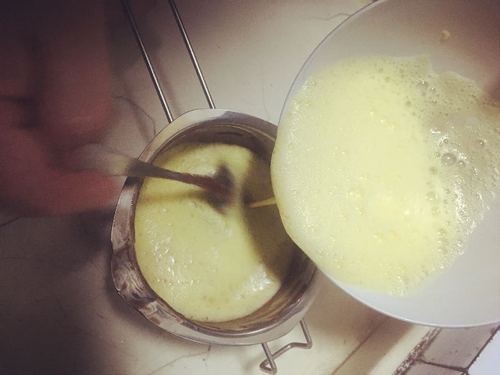 配方:全蛋液,牛奶B,细砂糖,黄油A