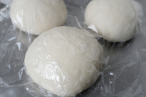 发酵好的面团取出,分成3等份,盖上保鲜膜醒发15分钟;