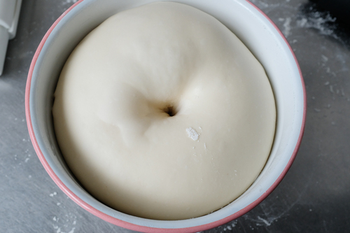 面团整理成团放入发酵容器中,发酵到两倍大(温度28℃左右为宜,冬天可以使用烤箱的发酵档、28℃进行发酵);