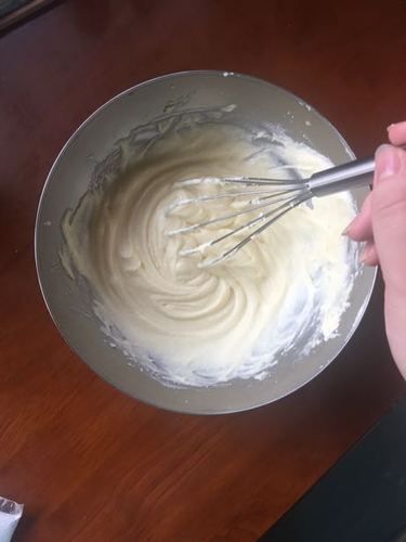 250g奶油奶酪常温软化后加入80g细砂糖打至顺滑无颗粒
