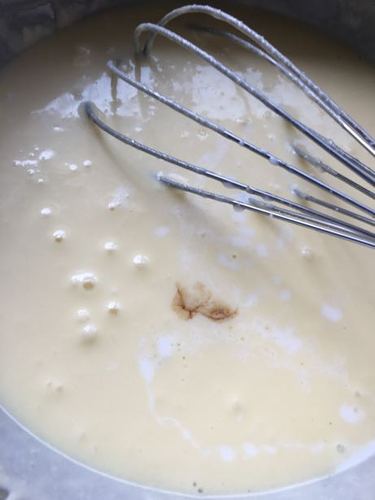 加入适量的香草精(没有可不加),牛奶80g,朗姆酒15ml搅拌均匀