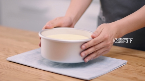 将蛋液震两下,震出较大的气泡,放入烤箱中层烘烤25分钟左右;