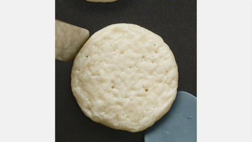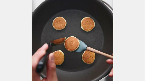 准备一个不粘锅,挤上面糊,当面糊表面出现气泡,底部金黄立即翻面;