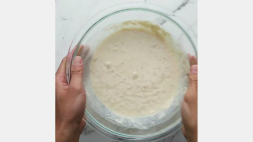 轻轻搅拌至面糊变稠,不要过度搅拌,把面糊倒入挤压瓶中;