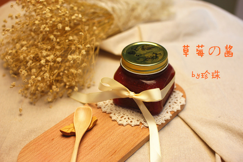 然后装罐并盖好盖子,倒扣晾凉,防止空气进入。随后放入冰箱冷藏,你就拥有新鲜的草莓酱啦!快和家人愉快的吃起来吧~