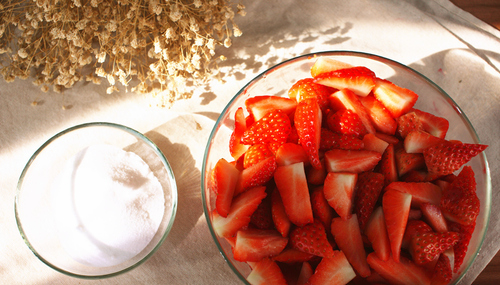 准备新鲜的草莓,大小均匀适中。将草莓洗干净,并切成大小相当的块儿。建议每颗草莓切横竖两刀,分成四小块;
