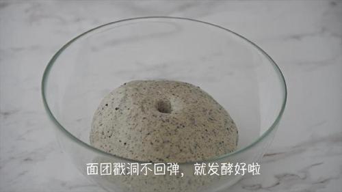 揉好的面团放入底部抹油的盆中,盖保鲜膜,放入烤箱中层启用发酵Ⅰ功能,25度28分钟。发酵程度判断:用手指在面团上按个坑,如果面团几乎不回弹、能留下指甲印,就说明发酵好了;