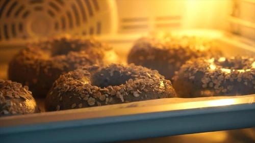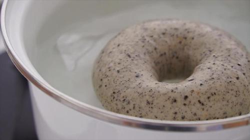 最后6分钟,烤箱稍微开点缝让水蒸气排出。待贝果上色后即可取出晾凉;