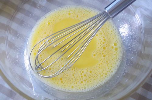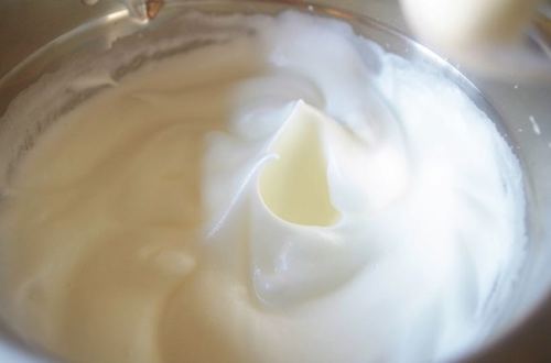 打发蛋白之前预热烤箱,175度。蛋白打发至小弯钩;
