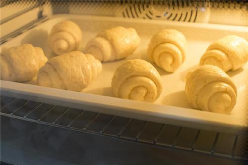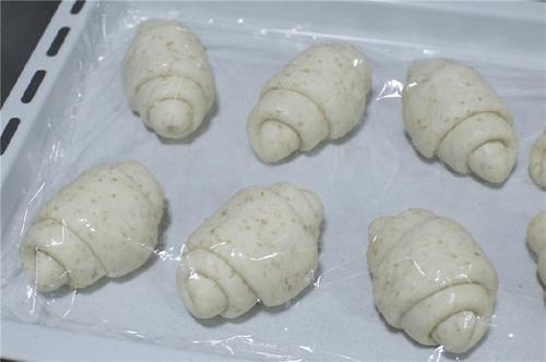 放入烤盘中,盖上保鲜膜或者湿布,放入烤箱,温度38℃发酵;发至两倍大时取出。同时预热烤箱190℃;