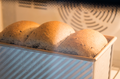 预热好之后放入吐司模具,调上火165度,下火220,烤40分钟左右,至表面充分上色即可出炉;