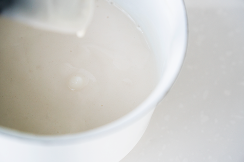 制作汤种:160g水+40g高粉混合均匀,加热至65℃糊化,离火放凉;接着把黑芝麻烤香后直接用破壁机打碎成芝麻粉;