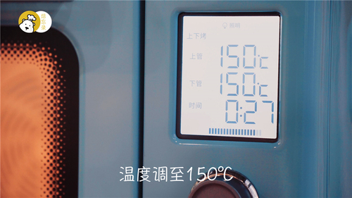 烘烤15钟后,给烤箱留缝,上下管温度调低至150℃,直至烘烤结束;