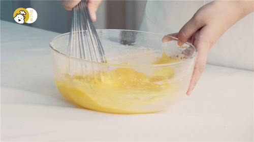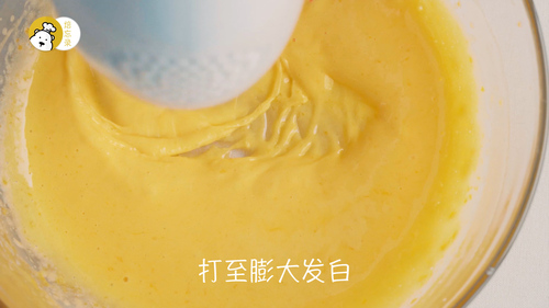 蛋黄与细砂糖A高速打发至明显膨大发白,如果有少量砂糖不融化是正常的;