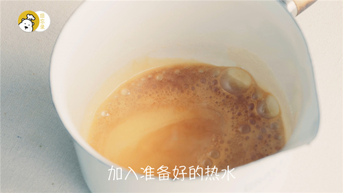 咖啡豆磨成粉状,热水冲泡好之后静置备用(视频里的冲泡比例是1:10);