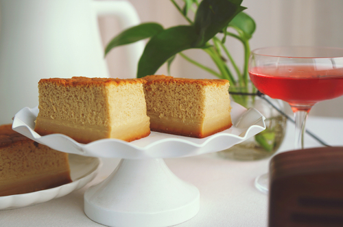 切去蛋糕四边不平的部分,中央部分切方块,即可食用;也可以将整块蛋糕冷藏过夜,第二天取出后会更好吃!切开后会看到有非常明显而漂亮的分层:焦糖底、布丁层与蛋糕层,吃起来口感也非常有层次哦!