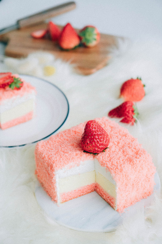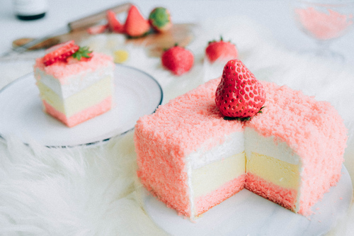粉色的蛋糕底搭配粉色的外层装饰,可以说是非常少女心的蛋糕了!切开之后层层分明,真正的好看也好吃哦!