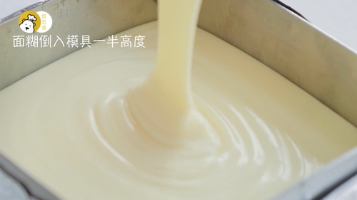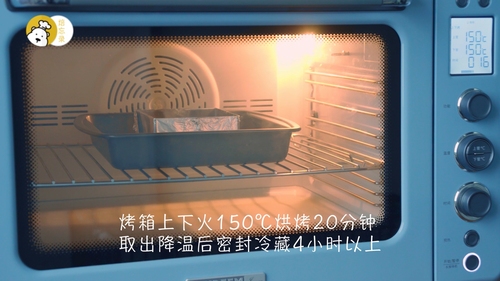 蛋糕放入烤箱中层或中下层,烘烤20分钟后出炉冷却;完全冷却后连模具一起密封冷藏4小时以上备用;