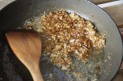 平底锅中高火烧热,加入黄油融化后,倒入蒜泥翻炒一分钟后熄火,熄火后加入蚝油和鱼露,搅拌均匀后备用