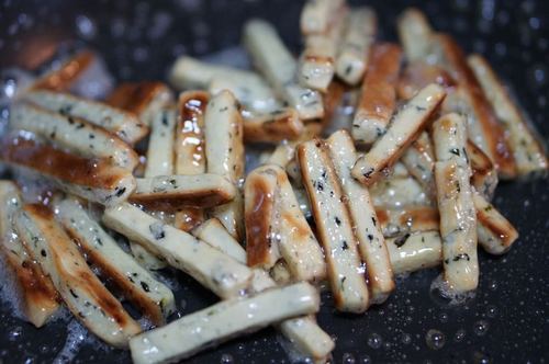 让糖浆均匀裹在饼干条上,继续翻炒直到饼干条表面出现糖的结晶