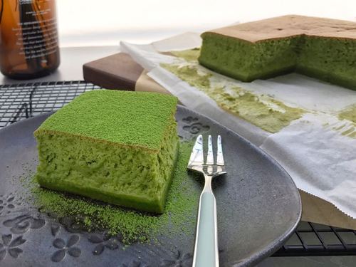 晾凉的蛋糕可以洒上抹茶粉直接享用,也可以彻底冷藏后再吃!上层蓬松的蛋糕和中间湿润柔滑的乳酪状流心,还有最下层的布丁底,只需要一份简单的面糊,一次烘烤就行,的确有点像“魔法”呐!